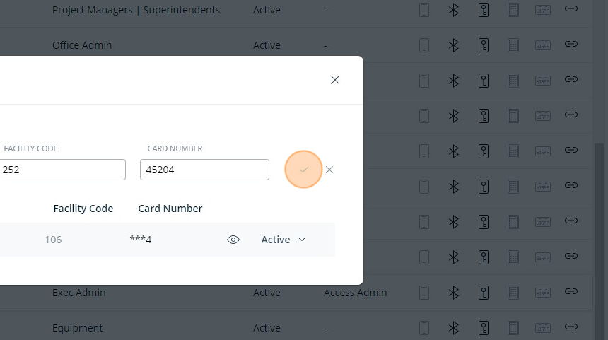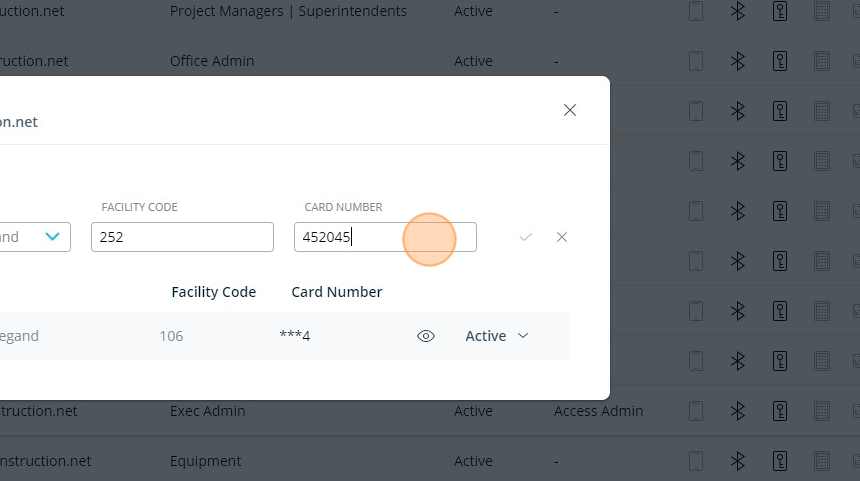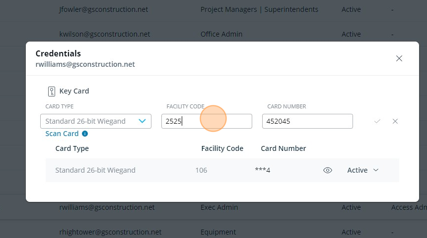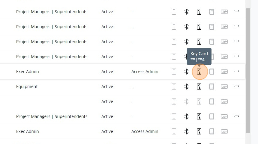 5. Identify the row related to the user/employee and select the Add a keycard option.